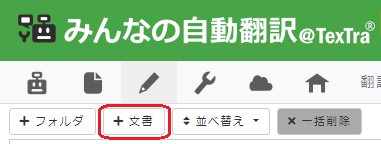 (1) 翻訳エディタトップ画面左上のツールボタン「+フォルダ」をクリック。